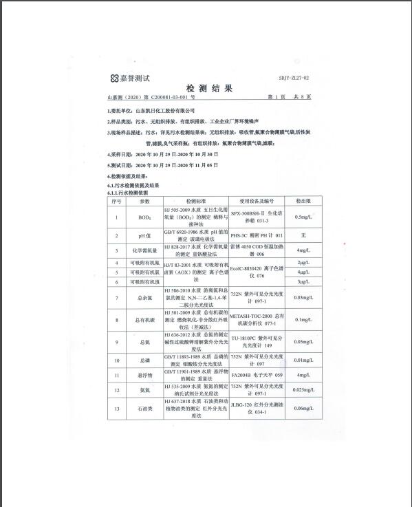 - 山東凱日化工股份有限公司環(huán)境檢測報告 2019-05-15